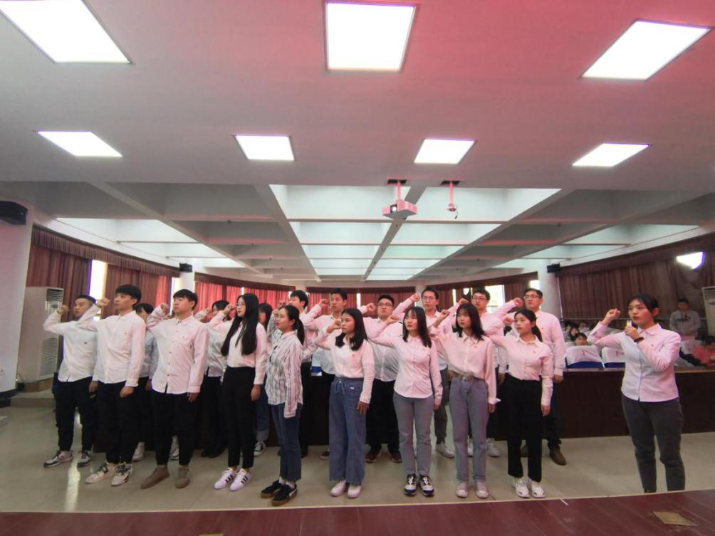 会议在国际歌的旋律中正式开始。首先,严胡伟向大会宣布了新党员名单。接着,在研究生党支部书记朱虹燕的带领下,全体新党员庄重地进行了宣誓,声音铿锵有力,表达了其强烈的入党意愿以及坚定的愿为共产主义奋斗终生的决心。