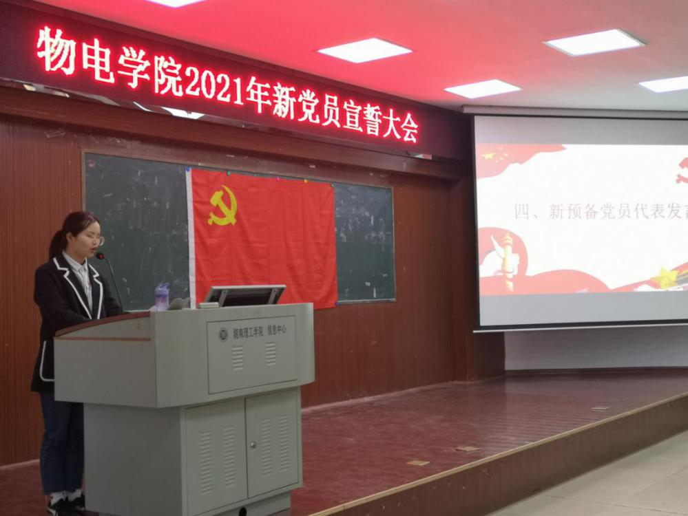 随后,新预备党员代表尹慧萍进行了发言。她表示:自己要以次宣誓为契机,在今后的学习工作中,牢记誓言,坚决遵守党章党纪,不断深入学习党的先进思想,时刻以党员的标准严格要求自己,为中国的共产主义事业贡献自己的力量。此外,她还呼吁参与宣誓的新党员同自己一道,用实际行动表达自己的热忱入党心。