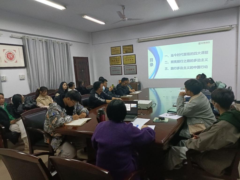 周畅为员工党员讲解多边主义的前行之路,剖析互利共赢的开放战略,呼吁同志们为促进绿色与可持续发展、主张共享科技发展结晶以及坚持多边主义四项原则贡献力量,共绘天下蓝图。