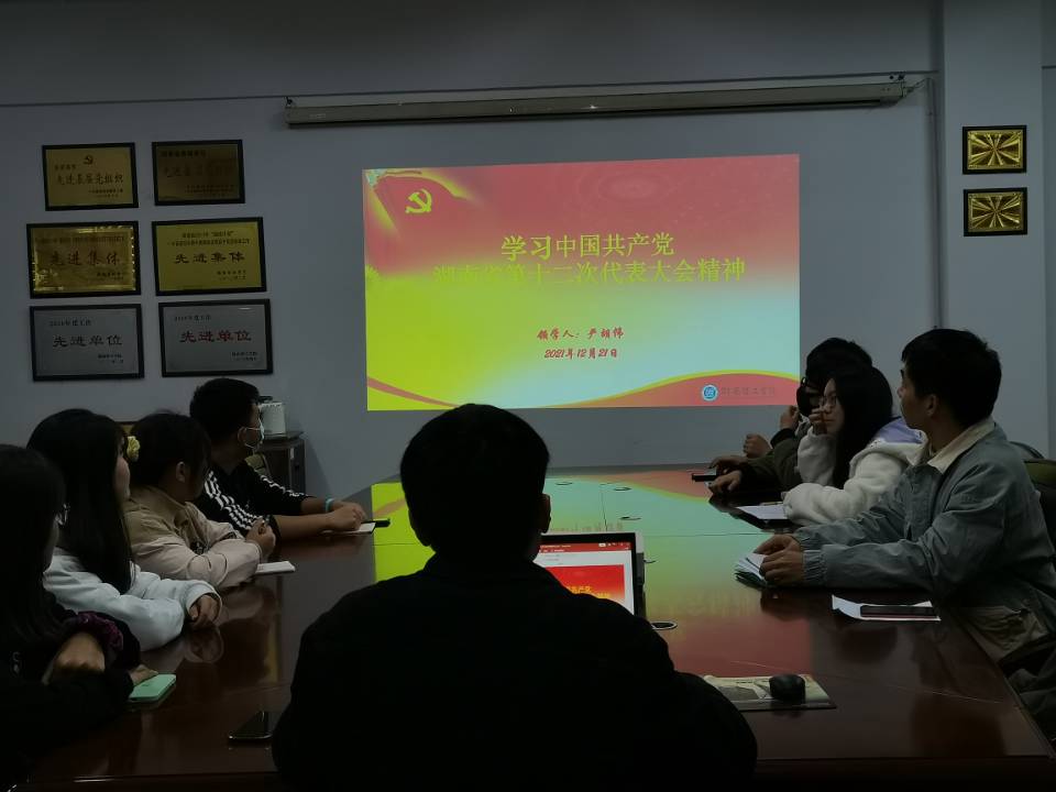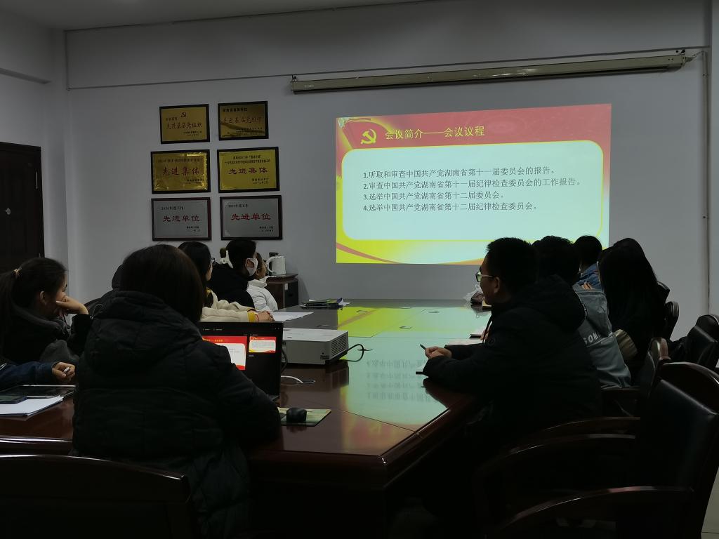 12月21日下午,MK体育员工第二党支部组织党员于6205会议室进行“中国共产党湖南省第十二次代表大会”精神主题党课学习。支部书记严胡伟授课,全体党员及预备党员参与学习。