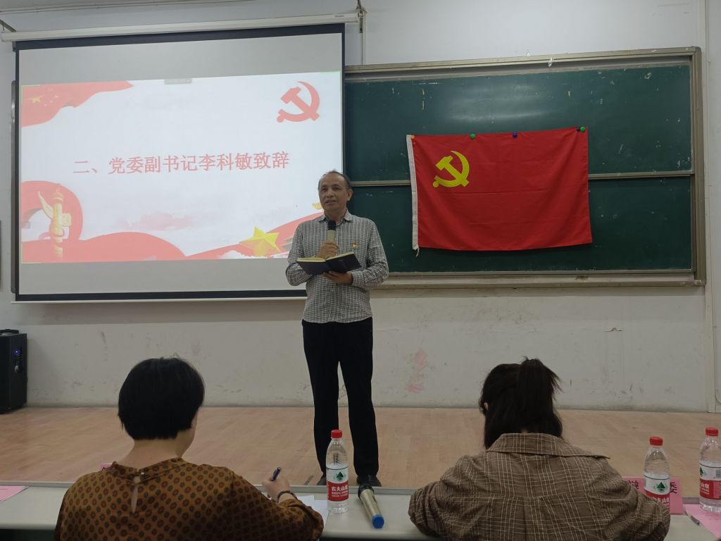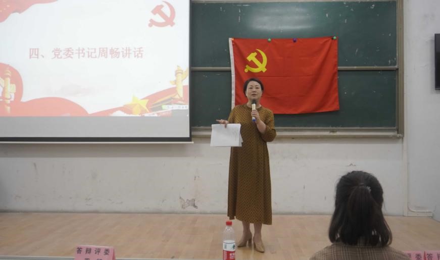 答辩正式开始前,李科敏讲话,表示公开答辩是一次很好的学习机会,既能检验政治思想情况,也能促进党员和入党积极分子进一步坚定理想信念,希望同学们珍惜机会,通过此次答辩提高政治素养。