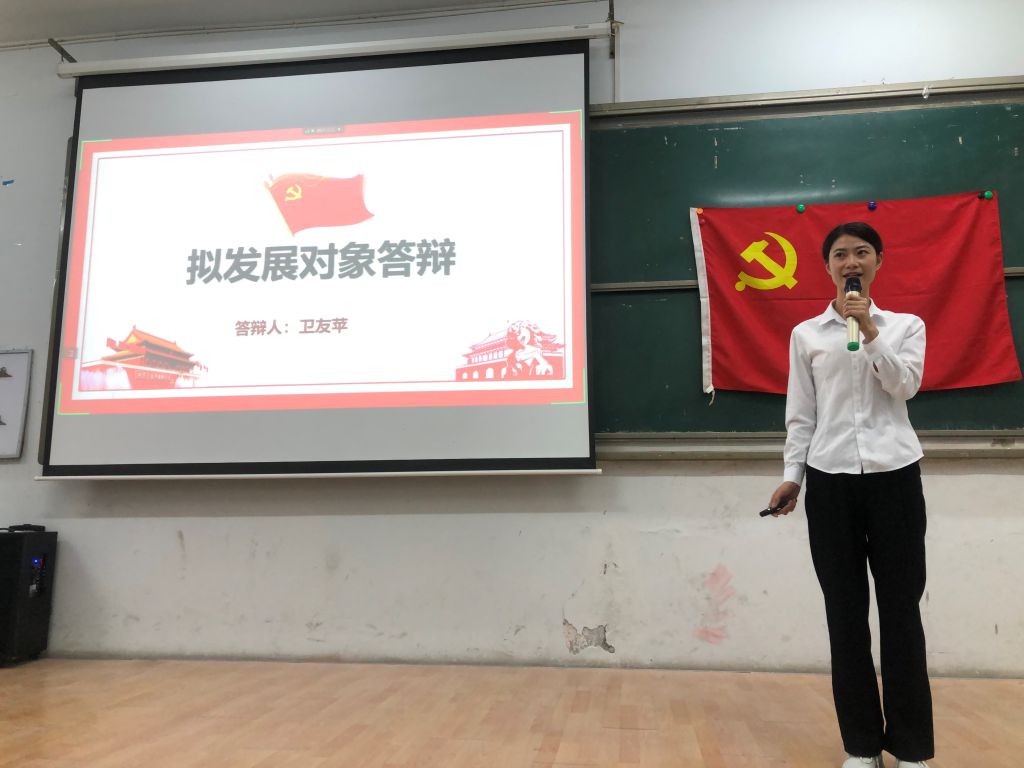 本次答辩人共22名,其中教师2名,员工20名,按照抽签顺序分成四组,他们分别围绕自己的成长经历、对党的认识、入党动机、理论学习、党性实践、思想汇报学习工作情况、不足和改进措施等方面进行陈述,限时5分钟,随后,由答辩评委进行提问,问题涉及马克思主义基本原理及习近平新时代中国特色社会主义思想等理论、党的历史、党章、党的路线方针政策等。每组答辩人陈述结束后,在场所有参与者对每人的答辩情况进行评定。本次活动持续三个半小时,着重考察答辩人的政治素质和党性修养,他们认真准备,答辩精彩纷呈,展示了良好的政治素养和精神风貌,特别是教师郭苏丽和卫友苹同台参与,大四员工陈勇以第四次答辩人身份继续参与,均展示了良好的风采和对加入中国共产党的坚定理想信念。