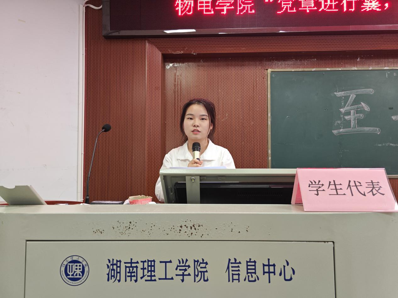 党委委员李科敏宣读了2024届优秀毕业生党员表彰决定,表彰了白楚楚、贺科翔、李准、李沁、欧阳祥朝五位优秀毕业生党员。优秀毕业生党员代表李沁和白楚楚分别进行先进事迹宣讲,分享自己在政治思想、学习生活中的奋斗成长经历和心得体会,激励在场的同学们积极奋发,锐意进取,立志今后为党和国家的发展贡献青春力量。