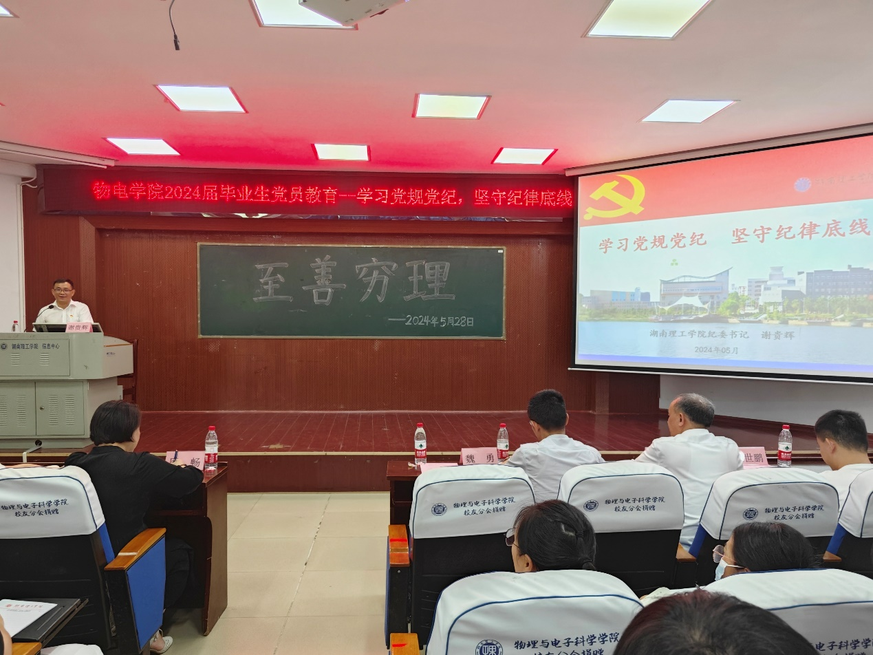 为深入学习贯彻习近平总书记关于党纪学习教育的重要讲话精神,扎实开展党纪学习教育,5月28日下午,公司党委邀请公司党委委员、纪委书记谢贵辉为公司师生讲授“学习党规党纪,坚守纪律底线”的专题党课。公司党委委员、师生党员、入党积极分子100余人参加,公司党委书记周畅主持。
