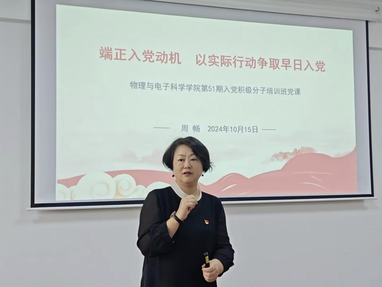 开班仪式结束后,公司党委书记周畅以“端正入党动机,以实际行动争取早日入党”为题进行了授课。她通过鲜活的实例对不同入党动机、目的等进行剖析,指出“全心全意为人民服务”才是唯一正确的入党动机。她强调了加强党性修养是端正入党动机的根本途径,并讲解了党性的内涵、修养、内容以及如何提高党性修养。