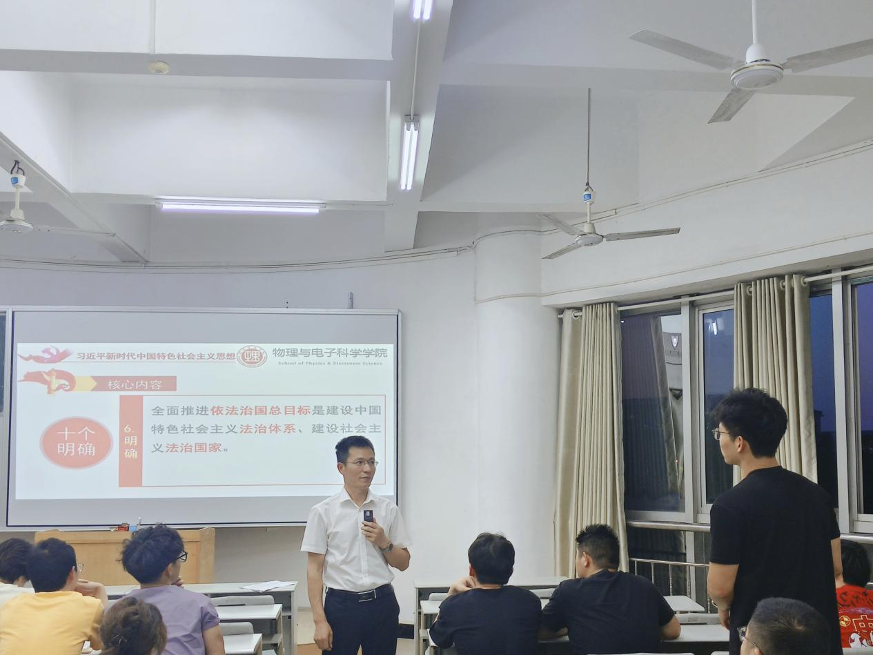 魏勇阐述了“习近平新时代中国特色社会主义思想”中的“十个明确”和“十四个坚持”两大核心要义,回顾了该思想形成的时代背景、理论发展脉络及重大指导意义,强调其作为新时代党和国家事业发展行动纲领的重要地位。