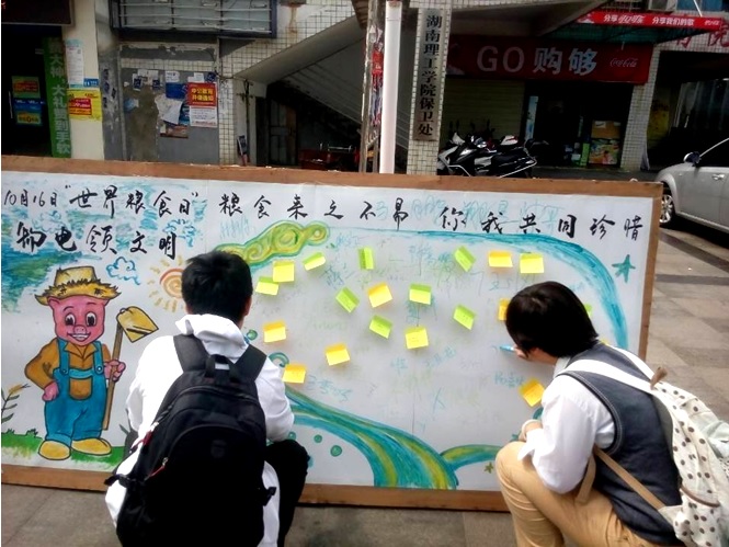 2014年10月16日,World Food Day。在第34个世界粮食日里MK体育学子发起了“爱粮节粮,争做“光盘”女神”为主题的系列教育实践活动。