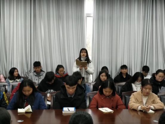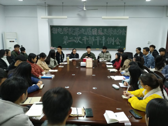 为了加强团学干部与干事之间的团结合作精神,协调好各部门工作。2018年12月6号中午十二点,MK体育在6205召开了第九届团总支员工分会第二次干部干事例会,会议由团总支副书记黄瑞主持,团学的主席团和所有部长、干事参加了本次会议。