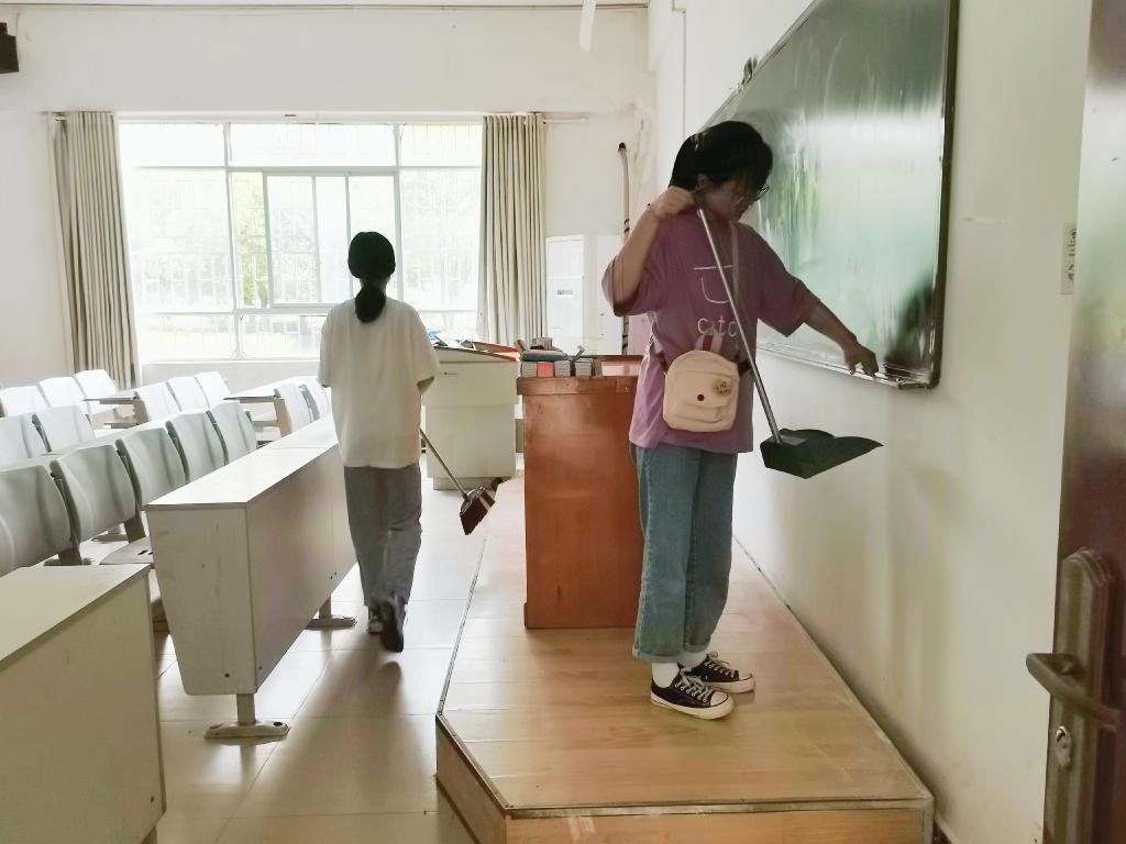 义务劳动过程中,同学们按照生活委员的劳动任务分配各司其职,虽逢周末,干劲不减,认真对每一间教室、会议室以及走廊、楼道等区域进行了全方位打扫,不遗漏任何一处。大家团结协作,配合默契,全身心投入到劳动中,不出一会儿,整个物电楼焕然一新。