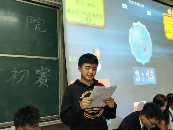 11月2日,公司为了激励同学们奋力追寻梦想,理智面对人生道路上的坎坷,MK体育在6t1和6t2教室开展“思辨杯”初赛,主持人分别是吴斯涛与唐佳宁,韩刚、杨冉、贺文洁、伍文洁等人分组担任评委,每组比赛正辩和反辩各四人,以及数余名员工前来观赛。