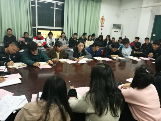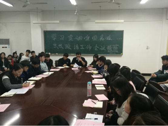12月22日晚7点,MK体育召开全体团学干部举行了学习培训会议,学工办主任张恒道老师、团学分会主席团委员、部长委员及全体干事参加会议。会议旨在传达学习贯彻全国高校思想政治工作会议精神。学习并思考高校关于培养什么样的人,如何培培养人以及为谁培养人这个根本问题,牢记立德树人为根本,把思想政治工作贯穿公司产品全过程,努力开创公司发展新局面。