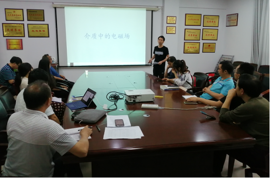 随后,分教研组开展“2020年教师信息化竞赛”和“2020年教师课堂教学竞赛”初赛和研讨活动。其中,物理学教研室的罗良博士利用“雨课堂”平台开展“数学物理方法”课程片断教学,李照宇博士结合“学习通”和“微信”平台开展“电磁场和电磁波”课程片断教学;基于工程教育认证,微电子教研室的钱坤博士和电子科学与技术教研室的冯伟博士理论联系实际,分别开展“数字电子技术”课程片断教学和“面向对象程序设计”课程片断教学;大学物理教研室的邹志军博士利用“九斗”app和腾讯课堂,开展大学物理片断教学。针对以上教师的初赛情况,各教研室成员结合立德树人根本任务,从课程价值、教学组织、教学方法、信息技术、课程资源、实践应用等方面提出意见和建议。