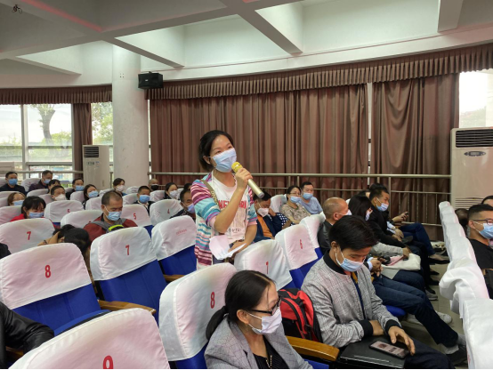 最后,家长提问环节,有家长问到:孩子在家总玩手机游戏,公司是否会采取上课上交手机的措施,张陈武书记作出相应解答:公司很是重视学风建设,在每个教室都设有手机袋,是否上交手机要根据课程要求来,手机有时也是必要的学习工具,并让家长放心,师者,传道授业解惑也,公司在学习方面一定会加强引导;还有家长关心孩子将来考研方面问题,李科敏经理表示公司非常鼓励员工考研,考研复习会有老师专门辅导,公司近年考研率在本校排名也较高,并保证公司一定会把考研工作做好。