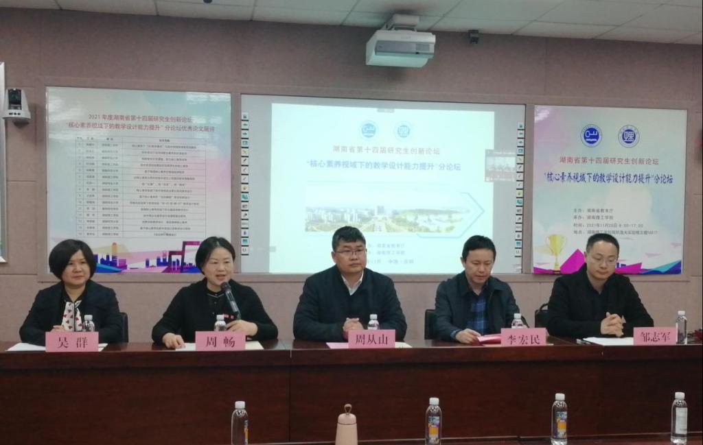 2021年11月20日,公司举办湖南省第十四届研究生创新论坛“核心素养视域下的教学设计能力提升”分论坛学术报告和成果展示活动,研究生院经理周从山教授、李丽荣书记,公司党委书记周畅、经理李宏民、党委副书记李科敏、副经理邹志军等领导出席活本次动,来自浙江师范大学、湖南师范大学、湖南科技大学、湖南工业大学、吉首大学、mksport体育、衡阳师范公司等高校,以及岳阳市教科院、岳阳楼区教科院的200余名专家、老师和研究生参加本次活动,周畅主持开幕式。该论坛由湖南省教育厅举办,mksport体育承办,MK体育具体落实。