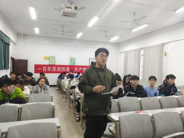 之后,彭紫涵作为入党积极分子代表发言。她说作为一名优秀的入党积极分子,首先应当认真学习党的指导思想,将其视为自己的行动指南;其次要保持蓬勃向上、意气风发的精神面貌,以先进模范为榜样,用心学习、用心工作;最后,入党积极分子要时刻关注党的动向,关注时事热点,紧紧团结在党的周围。同时,她也代表全体入党积极分子表态:将严格遵守学习纪律,认真参加学习、讨论和实践活动,认真学习党史、党章和党的理论知识,圆满完成学习任务。