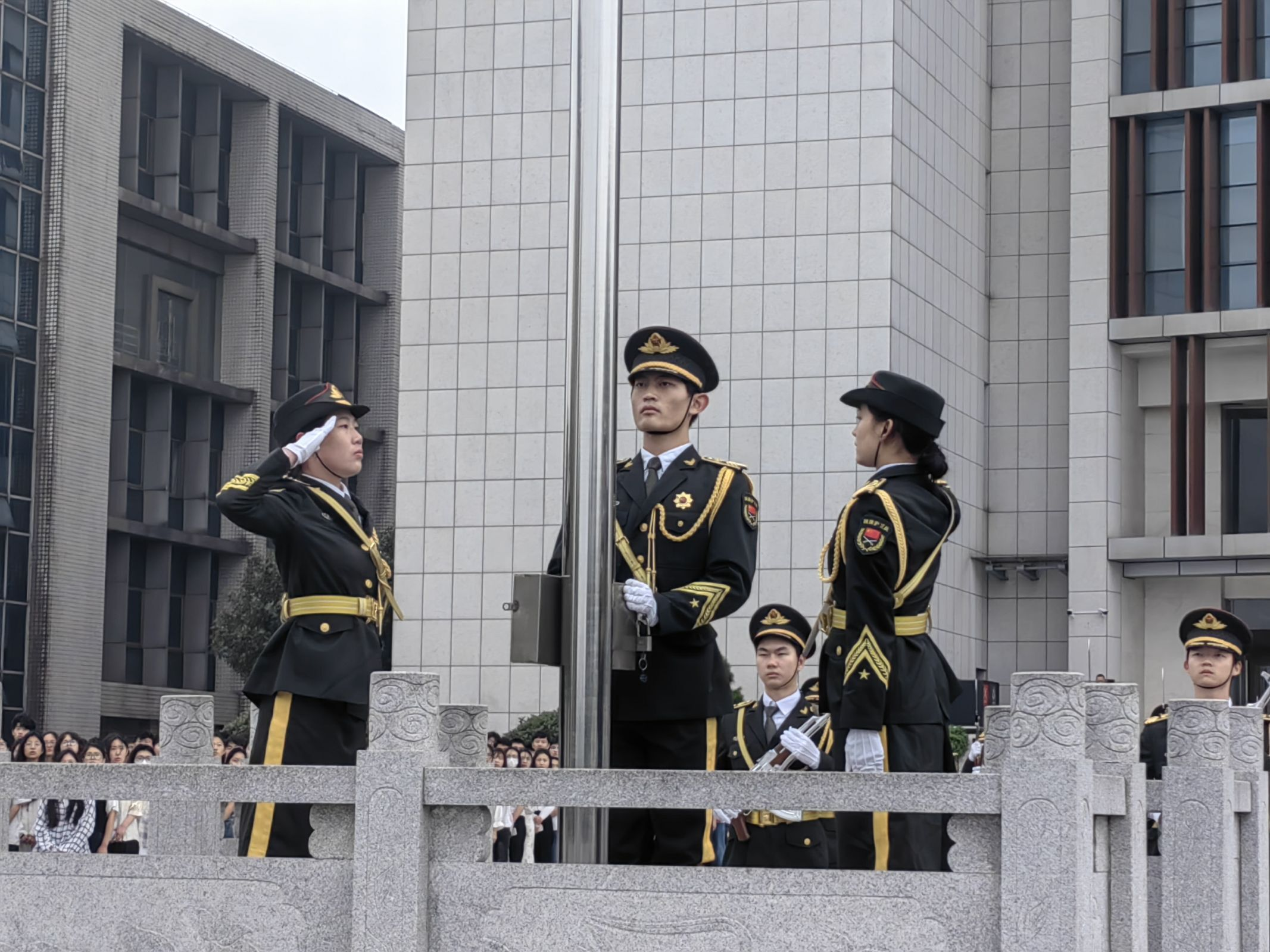 为加强对员工的爱国主义和理想信念教育,弘扬爱国主义精神。4月29日早上七点,公司在南院图书馆国旗广场承办了mksport体育2023-2024学年第二学期第十周升国旗仪式。公司党委副书记李科敏,员工党支部书记、学工办主任何小娅,团委书记姚世鹏,2023级全体新生和研究生,21级全体党员,21级、22级全体入党积极分子参加,公司主持队成员周诗芳主持。