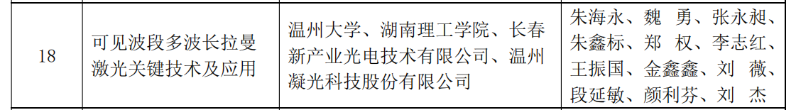 2024年12月25日,“第十六届中国商业联合会服务业科技创新奖”评选结果公示,公司魏勇教授与温州大学、长春新产业光电技术有限公司、温州凝光科技股份有限公司合作申报的“可见波段多波长拉曼激光关键技术及应用”成果获评一等奖。这是继2023年获评全国服务业科技创新奖一等奖之后,魏勇教授取得的又一突破性成果。连续2年获评省部级一等奖,是魏勇教授在激光关键技术及应用领域持续深耕的结果,也是MK体育重视高质量科研成果产出与转化工作的重要体现。