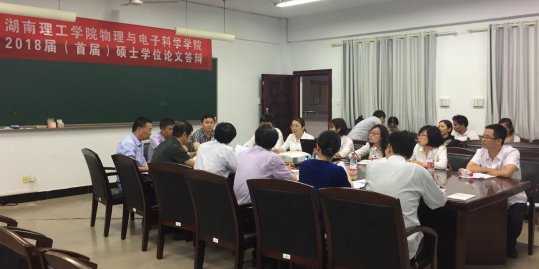 2018年5月26日,MK体育(学科教学·物理)首届硕士学位论文答辩在物电楼205会议室举行。湖南师范大学刘健智教授担任答辩主席,答辩委员包括衡阳市第一中学周慧颖老师(正高级教师)、MK体育苏卡林教授、李科敏教授、刘喜斌副教授、梅孝安副教授,李奇云老师担任答辩秘书;答辩对象为学科教学·物理2016级全体研究生,研究生院李丽荣书记、黄红霞老师、MK体育李宏民经理、罗文华书记到场指导,学科教学·物理2017级全体研究生观摩了本次论文答辩。