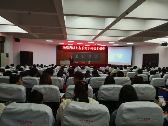 周工程师就人工智能进行了简要的说明,介绍当下物联网发展态势。他从AI与物联网的关系、应用进行了具体阐述。通过人工智能与人类对战视频的播放,让同学们领略了人工智能的强大。周工程师指出:AI让物联网变得更加智能,物联网更能凸显AI的价值。时代在不断发展,家居也能智能化。周工程师就智能家居的原理进行了更形象的具体阐述。讲座的最后,周工程师向同学们展示了公司研发出的机器人并鼓励同学们努力学习,勇于创新。会后和同学们一起深入的交流了公司最新的实验室产品。