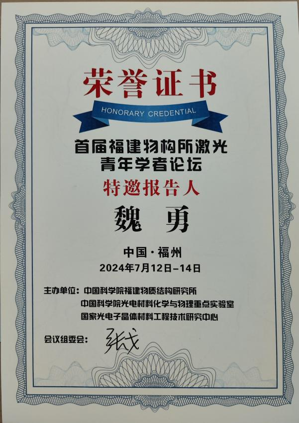 公司魏勇教授受邀在首届福建物构所激光青年学者论坛做报告
