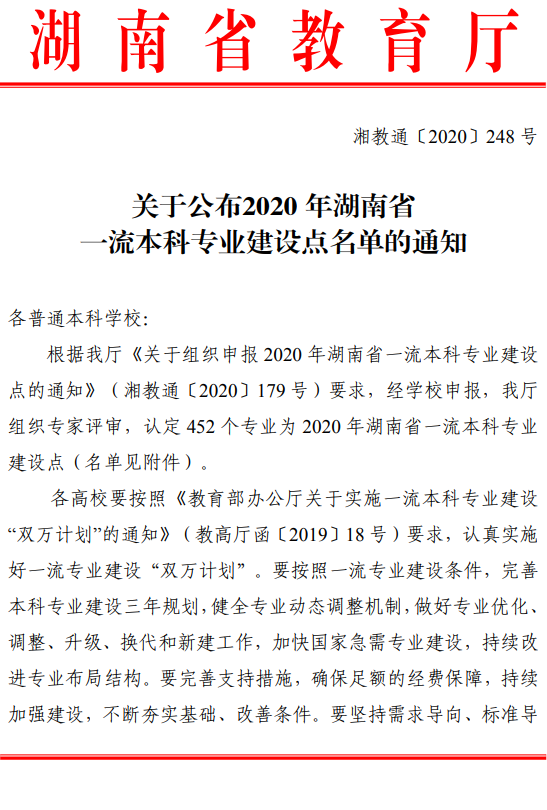 根据湖南省教育厅湘教通〔2020〕248号文件,公司物理学专业荣获2020 年湖南省一流本科专业建设点。