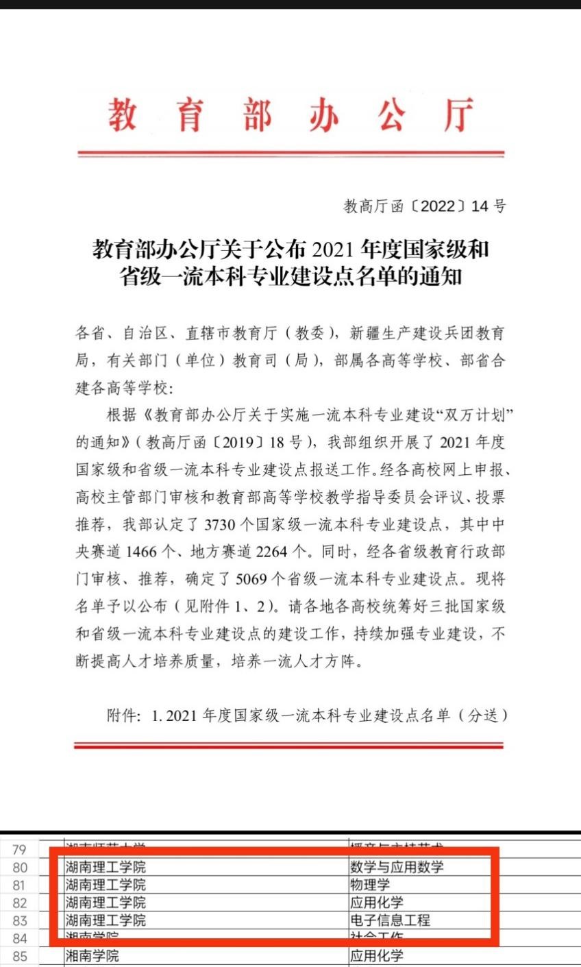 近日,教育部办公厅发文公布了2021年度国家级和省级一流本科专业建设点的评审结果。公司物理学专业获批国家级一流本科专业建设点,这是物理学专业继2020年获批湖南省一流本科专业建设点之后新的里程碑。