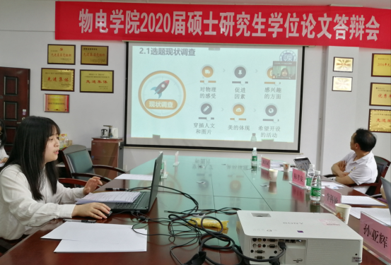 2020年6月7日,mksport体育2020届学科教学(物理)专业硕士研究生学位论文答辩会在MK体育6205会议室隆重举行,15位参加本次答辩的2018级研究生,答辩委员会成员周慧颖(衡阳市第一中学,正高级教师)、苏卡林教授、李科敏教授、刘喜斌副教授、孙亚辉副教授、梅孝安副教授,研究生院李丽荣书记,MK体育经理李宏民教授、书记罗文华教授,以及相关工作人员、2019级部分研究生出席答辩会,答辩会由答辩委员会主席、湖南师范大学刘健智教授主持,由于受到“新冠疫情”的影响,本次答辩会采取线上线下同步进行,其中刘健智教授、周慧颖教授,彭盈、孙艳华等5位2018级研究生,以及部分2019级研究生通过腾讯会议出席答辩会。