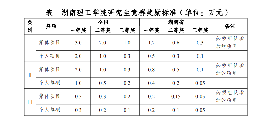 表 mksport体育研究生竞赛奖励标准(单位:万元)