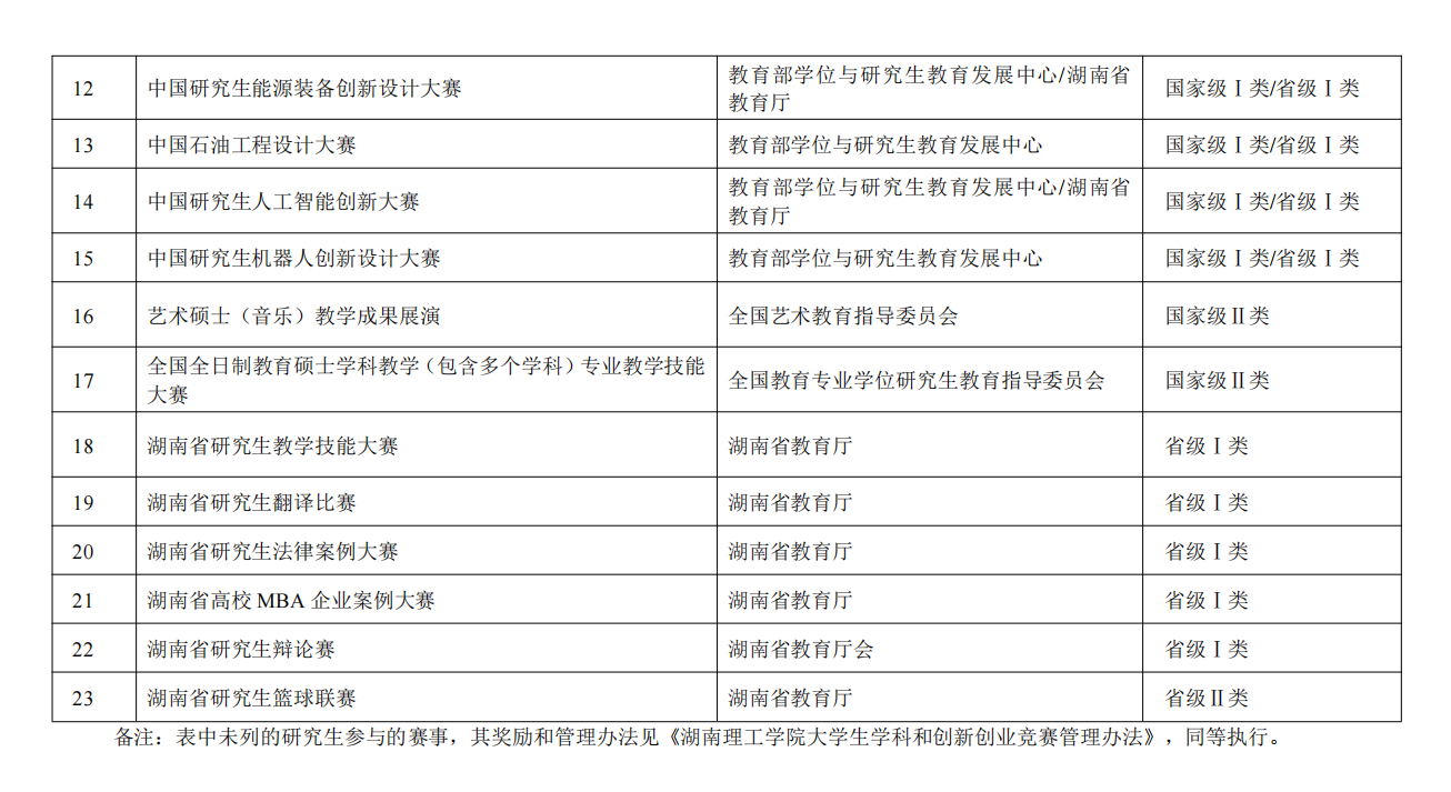 )同一项目竞赛不重复奖励,如在同一年同时获得二个及以上级别的奖项,按最高标准