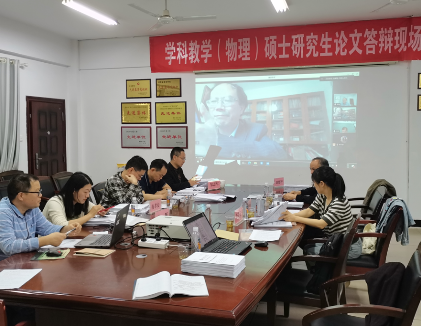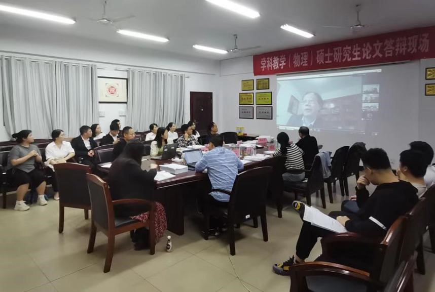 五月榴花照眼明,枝间时见子初成。MK体育2022届学科教学・物理硕士学位论文答辩会于5月22日在物电楼6205会议室举行。答辩委员会由湖南师范大学刘健智教授担任主席,衡阳市第一中学正高级教师周慧颖,MK体育李科敏教授、刘喜斌教授、邹志军副教授、梅孝安副教授、吴琴琴副教授、陈灏老师组成,李奇云老师担任秘书,共15位硕士研究生参加了本次毕业论文答辩,答辩会采取线下+网络远程视频方式进行。