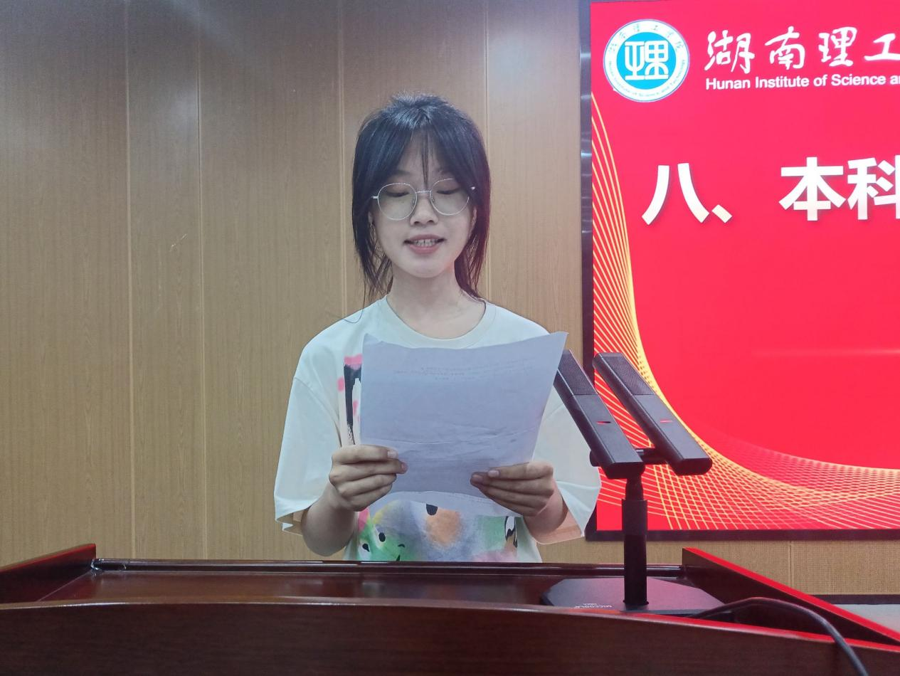 新生代表谢李想、唐语嫣表示要在湖理这一崭新的舞台上,积极探索、大胆实践、接受全新思想的洗礼,以新的语言、新的行动、新的风貌去适应新的环境,开启一段新的旅程。