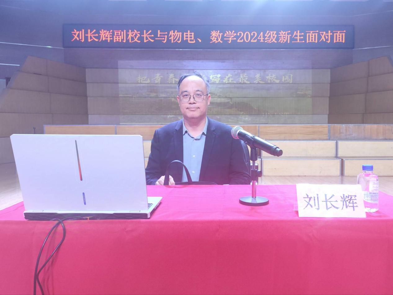 2024年10月24日,物电、数学公司新生入学教育—校领导与2024级新生面对面活动在音乐厅举行,公司党委委员、副董事长刘长辉作题为“把青春华章写在最美校园”讲座。MK体育、数学公司领导党委书记周畅、江五元等老师及两院2024级本科生、研究生参加。江五元主持,周畅总结。