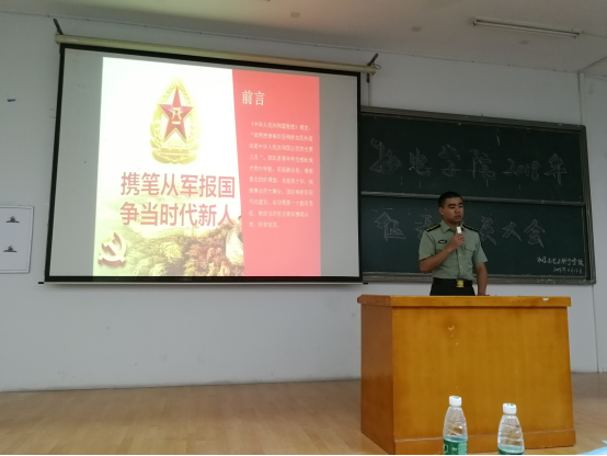 经理李宏民首先发表讲话,分析了军人对于当今国防和现代化建设的重要意义,鼓励MK体育全体青年学子响应国家号召,抓住机会,到部队成长成才将爱国之情化作报国之行。第三宣讲团南湖文法系的谢颖MK体育研究生周虎田进行政策的宣讲,介绍了征兵工作的预征对象、身体条件等对有关学费减免、复学等政策进行了解读分享了部队生活对于自己各方面的改变,成为一名军人让他们变得更坚毅勇敢,也更加有追求。