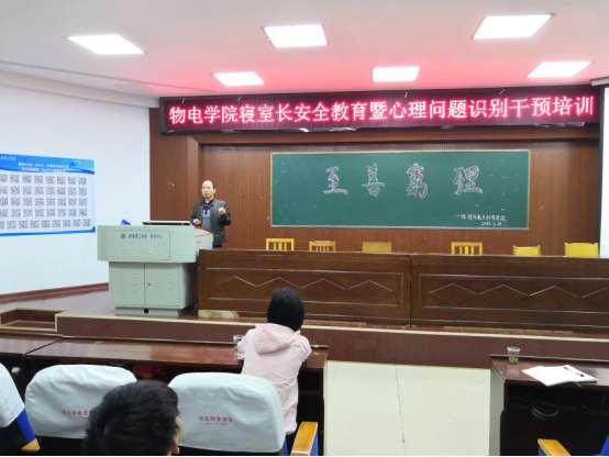 最后,张书记对本次培训做出小结,指出寝室长要有相关意识并能够去知道身边哪些人需要关心,能够第一时间去干预,最快反馈到老师那,让老师明白哪些人群需要关心,哪些时间段可进行全面分析,掌握这方面的知识并祝同学们大学四年愉快度过。
