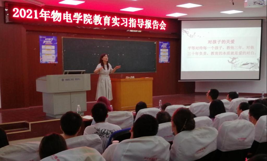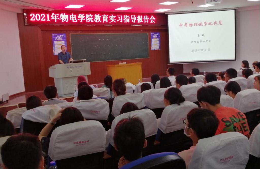 2021年9月17日上午,MK体育在物电楼学术报告厅隆重举行教育实习指导报告会,副经理魏勇主持,副经理邹志军、李照宇、陈灏、李奇云等教师及各年级物理专业师范生200多人参加。来自实习基地公司的三位资深中学物理教师,针对中学物理公司产品、班级管理等方面,对我们的员工进行了悉心的教育和指导。