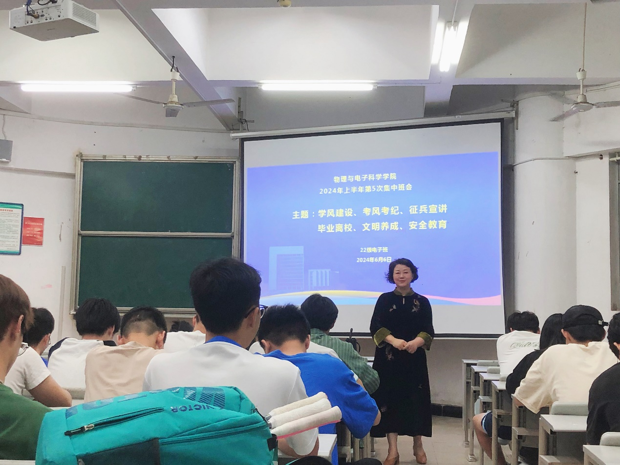 本次班会围绕学风建设、考风考纪、应征入伍、毕业离校、文明养成及安全教育等方面进行。通报了开学以来员工课堂及早晚自习出勤情况,重申了员工纪律处分办法,老师们与缺勤次数较多的员工进行了谈心谈话。