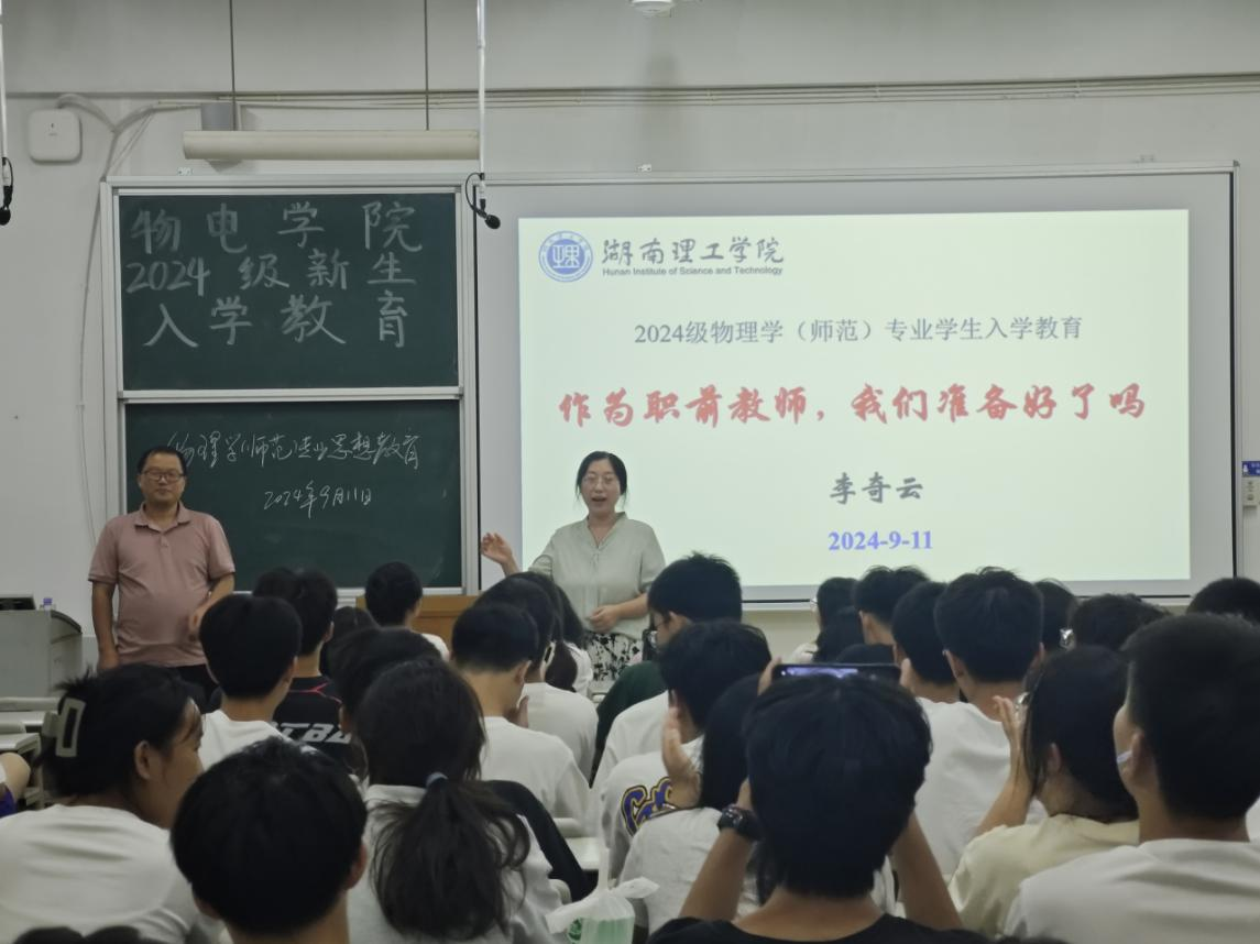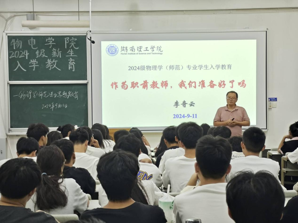 为帮助2024级新生尽快适应大学学习生活,做好生涯规划,促进大学期间全面发展与健康成长,为成为未来优秀教师打好基础,9月11日晚,MK体育在6102教室召开物理学(师范)专业思想教育讲座。MK体育教研室主任李奇云老师主讲,公司党委副书记石红芳、2024级物理学(师范)专业班主任李意芝、李磊出席,2024级物理学(师范)专业全体同学参加。