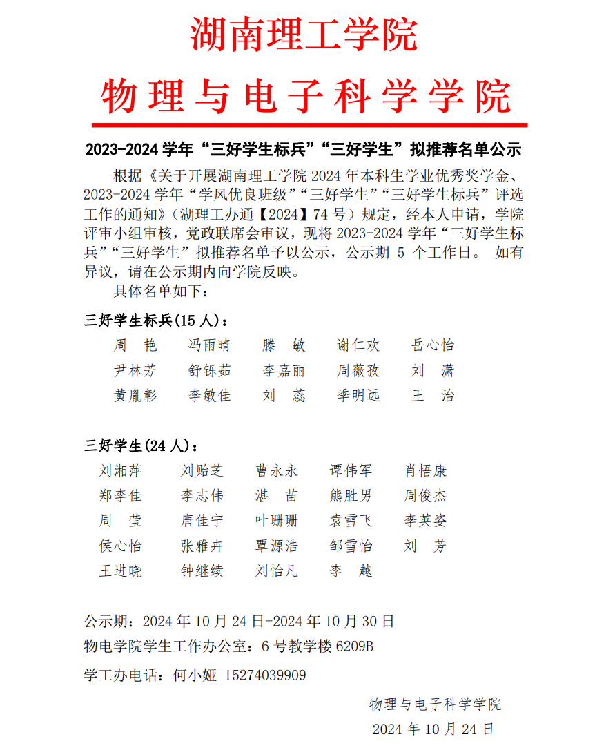 MK体育 2023-2024 学年“三好员工标兵”“三好员工”拟推荐名单公示