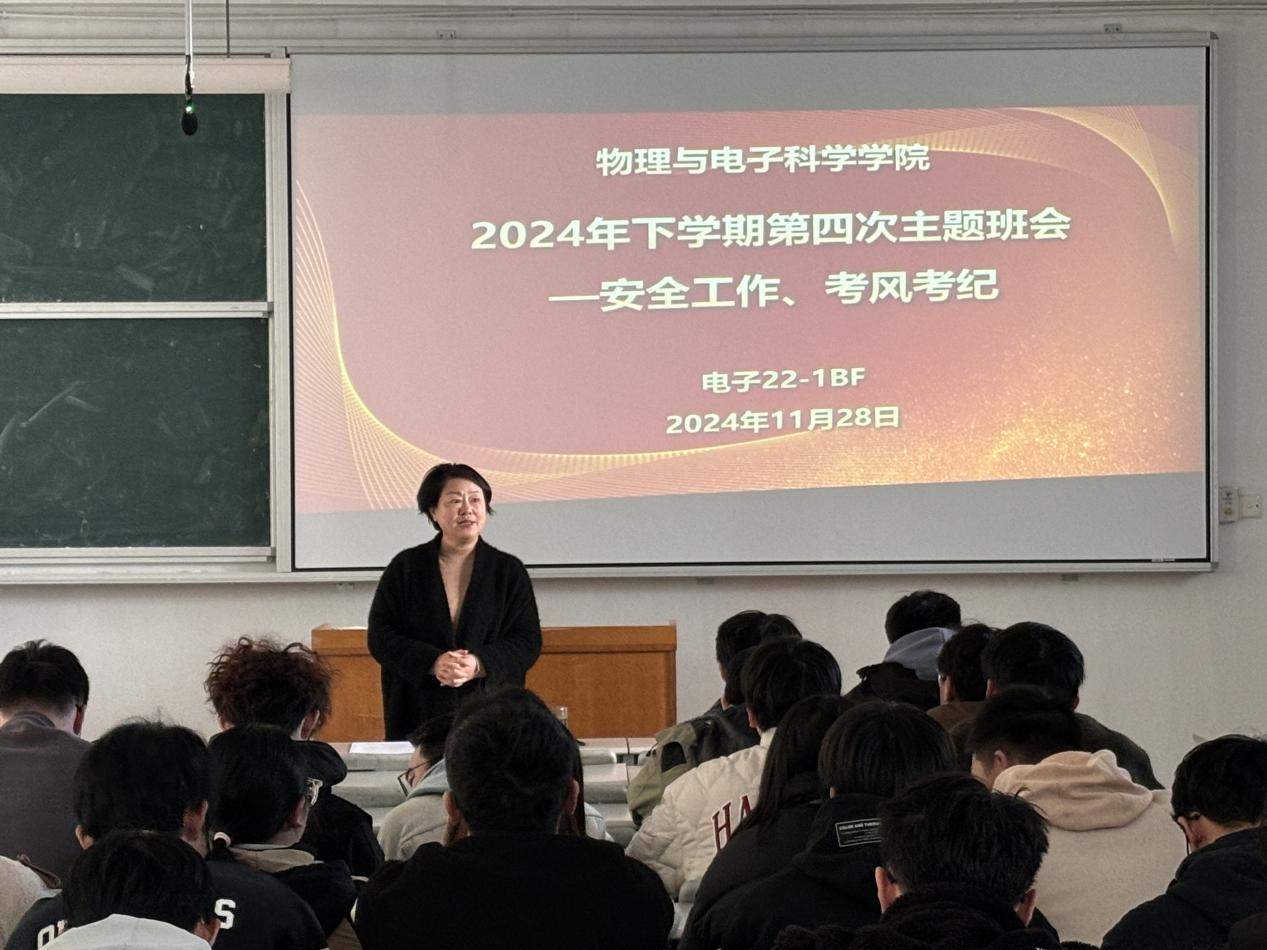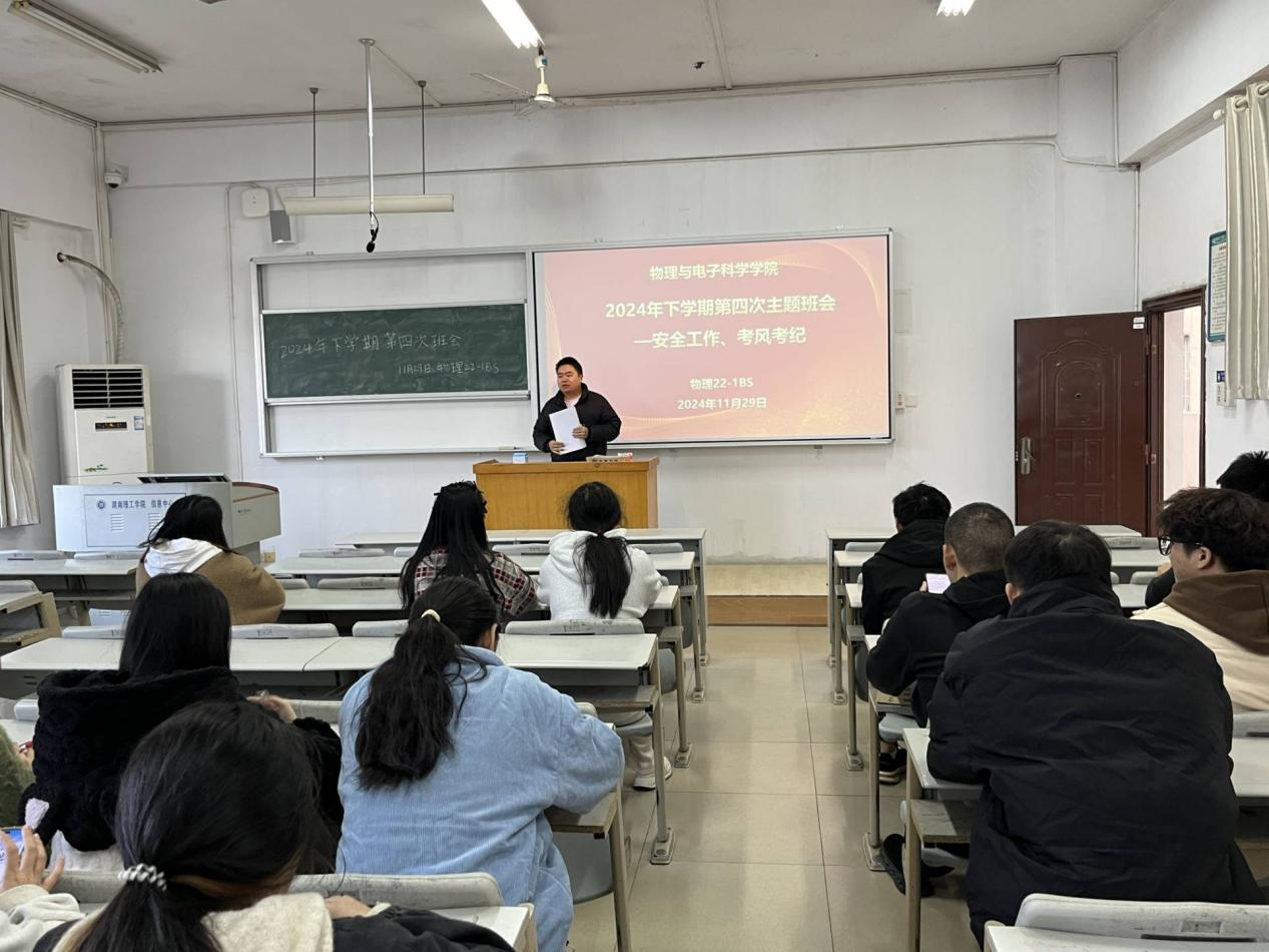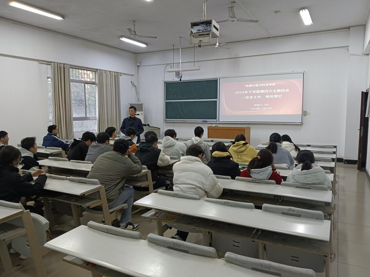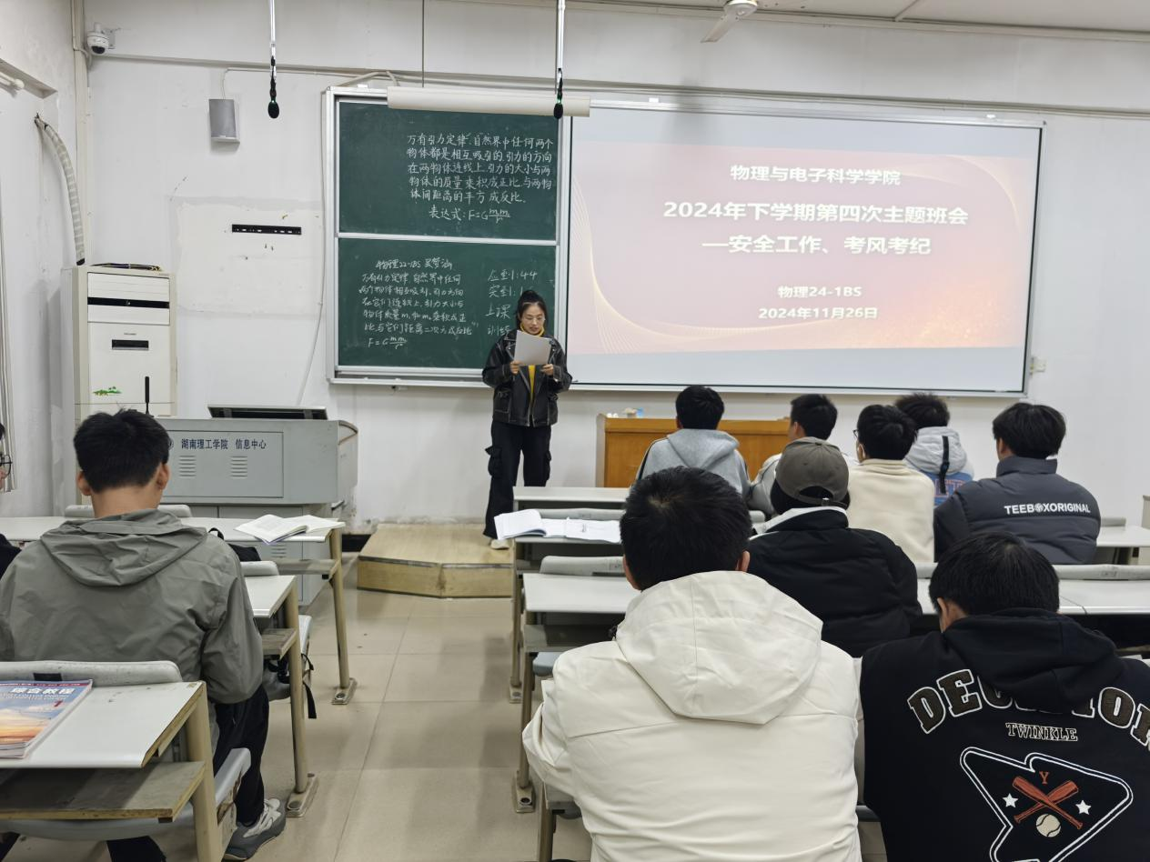 班会围绕安全工作和考风考纪开展。班主任带领同学们学习了《关于加强员工宿舍晚归等情况教育管理的通知》、《关于开展校园员工电动车、摩托车集中整治工作的通知》、《mksport体育员工考试违规处理办法(修订)》等文件精神。